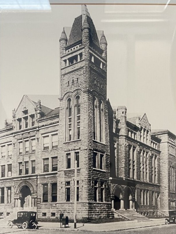 This photo shows the 1935 addition, angled to meet the original 1893 building. The lab’s double-height ceiling helped vent fumes—a smart solution for its time. Though outdated by today’s standards, it served generations of students. In the 1970s, a common warning captured the program’s rigor: “One of your lab partners will be gone in six months.”