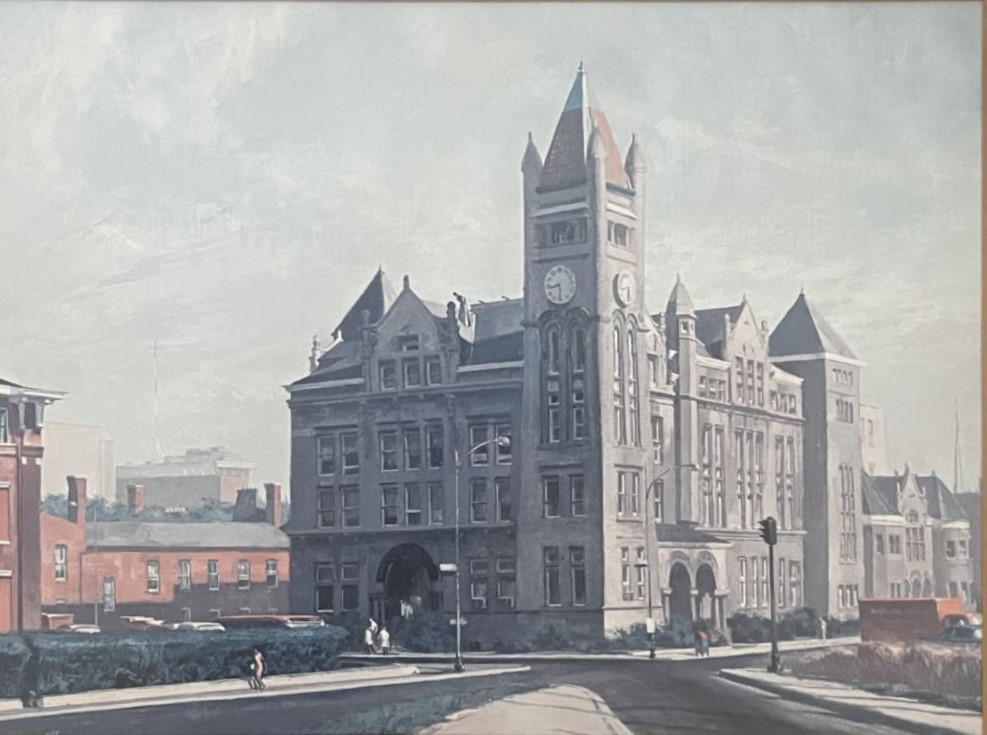 This vibrant painting captures the historic University of Louisville School of Medicine. The rich colors and intricate details highlight the architectural beauty and significance of this esteemed institution. The scene reflects the university’s enduring legacy in medical education and its commitment to advancing healthcare.
